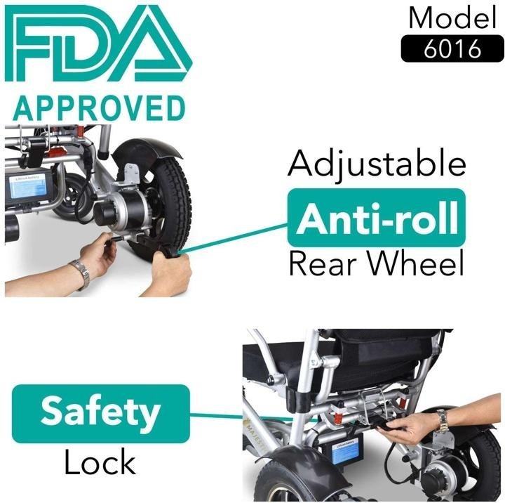 • ?PORTABLE WHEEL CHAIR: The electric wheelchair is an innovative all-new design travel folding wheelchair. FDA Approval, This foldable wheelchair is convenient, Easy for the Aviation Travel. This electric wheelchairs for adults is a compact wheelchair that can travel anywhere you go.