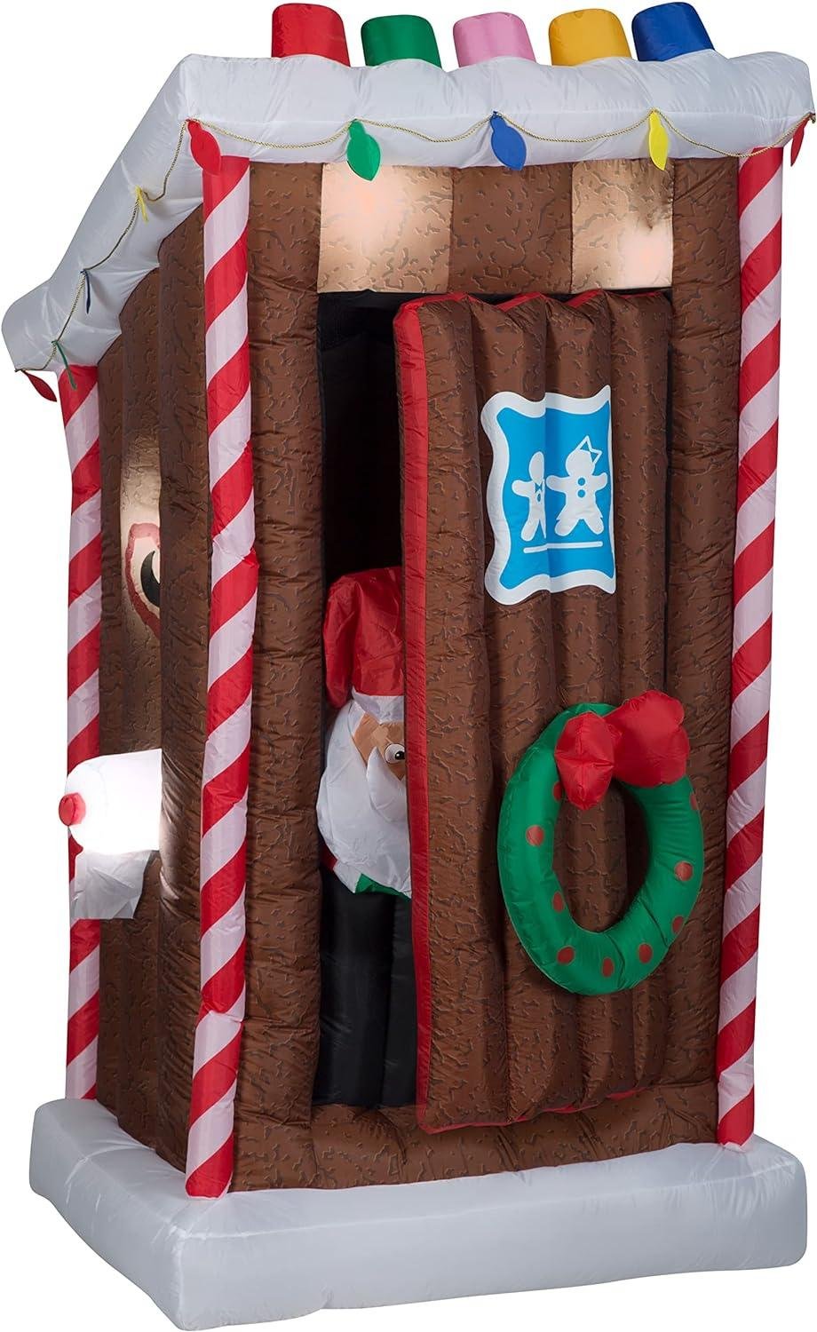 Gemmy Animated Christmas Airblown Inflatable Santa’s Outhouse, 6 ft Tall, Multi