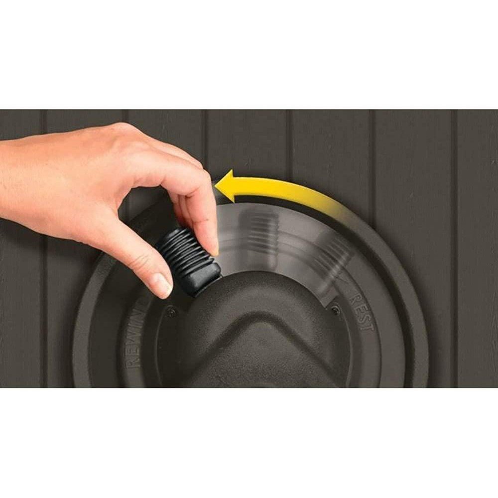 • Features hands-free rewinding at the flip of a lever