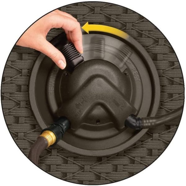 • AUTOMATIC HOSE REEL: Water-powered wicker garden hose reel uses Smart Trak to guide hose neatly into reel